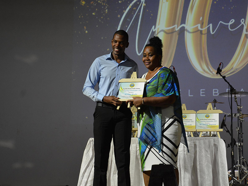 Once again, SBSA award recipients received awards sponsored by different organisations namely Office of the President, Ministry of Education, Central Bank of Seychelles, Development Bank of Seychelles, Credit Union, Nouvobanq, Cable and Wireless, Intelvision, SRC, Air Seychelles, HSavy Insurance, SACOS, Prime Insurance, Le Duc de Praslin, Big Up Kreol, Laxmanbhai, Hilton Northolme, Ian Charlette Consulting, Pro Services, PUC, Masons Travel, STC, Berjaya Beau Vallon Bay, Office of the Attorney General, The Guy Morel Institute, Mango House, Members of the SBSA Governing Board, including individuals namely Hon. Doyace Poris, Ms Evelina Antha, Oriana Bristol, Mrs Midzy Ernesta, Mrs Lisette Barra.
